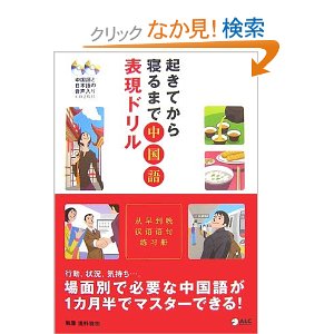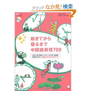 過去に使用した教材 3 中国語 教材 2014年01月28日 『起きてから寝るまで中国語表現ドリル』アルク ★★★★ 中国に着いたばかりの頃は、発音のチェックにこの本を使ってました。 初心者にはあまり向かないと思いますが、文法が気にならない人はOK。 惜しむらくはもう売ってません。 ということで、今はこちらが店頭には並んでいるようです。 『起きてから寝るまで中国語表現700』アルク 購入してませんが、他のブログでも割りと好評のよう。 立ち読みした所、中身は変更されてます。 とりあえず、今欲しい教材の一つ。 姉妹版で単語帳や、成語等あります。 『起きてから寝るまで中国語単語帳』は購入済み。 イラスト中心でそこに中国語がついてるパターン。単語帳らしくない。 日常使う物や事柄の名詞中心。自分にはしっくりこなかった。 ★★☆