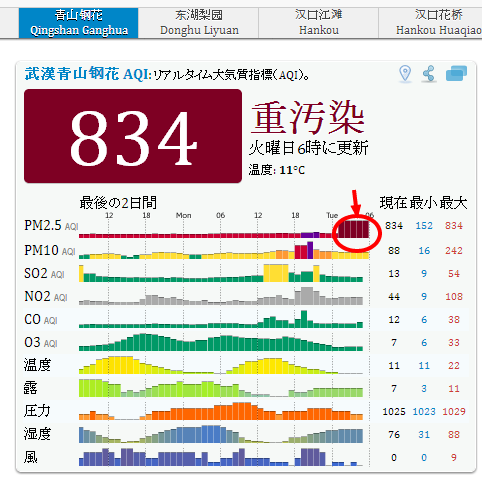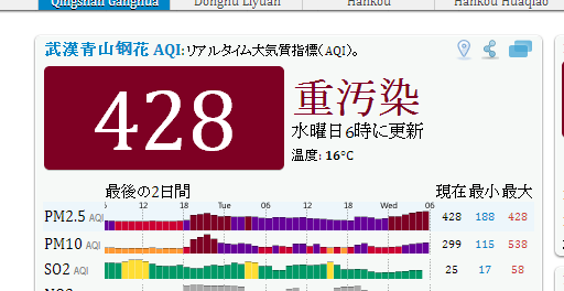 誤表示w 中国 2013年11月05日 起きてびっくり。なんじゃこりゃ~! 昨晩の12時頃からメーター振り切ってますね(笑) ほかのところは 実際、体感(視界とにおい)だと200くらいだと思う。 何かの間違いでしょう。 洗濯しよう。 PR