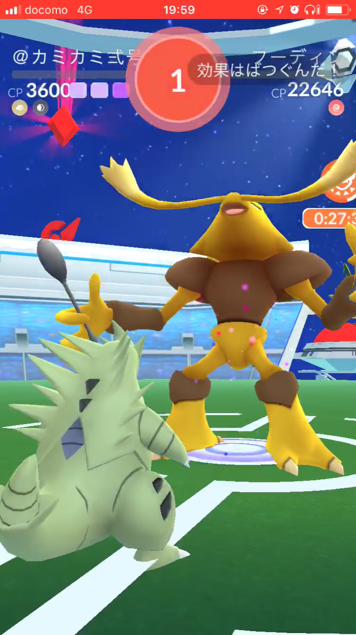 フーディン 念力・シャドボも撃破。 ポケ活 2017年10月31日 念力・シャドーボールも倒しました。 レイドの残り時間がなかったので 試行錯誤はできず、力技に。 シャドボの間隔が短いので、ゲンガーを 上手に使うのが難しいですね。念力だと。 結局、以下の布陣。 フーディン、ハッサムはシャドボ1発なら 耐えられるので。 最後はフーディンのシャドボで沈めました。 残り4秒くらいでした。 ▼ 第三世代の世代の実装と合わせて、レイドボスも 変更してもらえるとうれしいですね。 それにしても、結構倒している割に 個体値がよいフーディンには会えません… ▼ あとはリアル人生の目標へ向かってGOですw PR