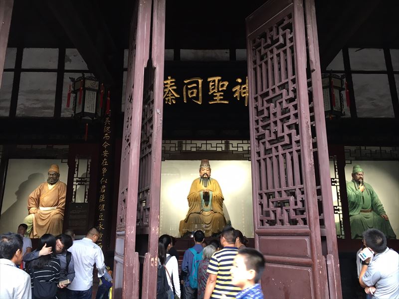四川省へ ~その11~ 旅 2016年10月30日 “武侯祠”へ行くつもりだったんですが、 先に昼食をと“锦里古街”に行くことにします。 “武侯祠”の隣ですしね。 “宽窄巷子”とあまり変わらない景色が(笑) 場所が場所だけに、至る所から三国志の香りが。 このお店でお土産を買いました。 三国志好きのお友達が喜ぶこと間違いなし。 火锅を食べた店に張ってありました。 歇后语みたいな感じでしょうか。 腹ごしらえをして、時間を気にしつつ 正門ではありませんが、(裏の出口?) “武侯祠”へ入場します。 ここは人だらけでした… ちなみに友達は三国志についてはほとんど 知識がありませんでしたww 日本人でもゲーム、漫画、小説あたりを通過して ないと興味ないでしょうね。 他にもマイナーな方々も結構いらっしゃいました。 人形三国志の孔明が!!(紳助竜介がやってた記憶が) 本物のようです。 友達置いてけぼり。一人で興奮してました。 ここで時間がきてホテルへ戻ります。 無事空港に着き、楽しかった旅行も いよいよ終わりの時を迎えます。 成都の空港は45分前に手続きでした。 中国の国内線、かなり厳しくなってます。 (国慶節だったからかもしれません) 友達は武漢へ戻るので、ここでお別れです。 武漢滞在中からずっとお世話になりました。 ありがとうございます。 上海には23:30着だったので、初めて 空港の近くのホテルに泊まりました。 さすがに浦東空港。遅く着いてもタクシーの 心配をしなくてもいいので助かります。 ▼ 泊まったホテルで「明日はタクシー呼んで」と 頼んだら「自分で呼んで」と粋な答えがw 送迎バスがあったので空港までは問題なし。 翌日はバスの都合で早く着きすぎましたが、 無事に長崎に着くことができました。 ということで、成都にはまた行きたいです。 楽山とか峨眉山にも行ってないし(笑) ▼ そろそろ社会復帰しないとまずいですwww