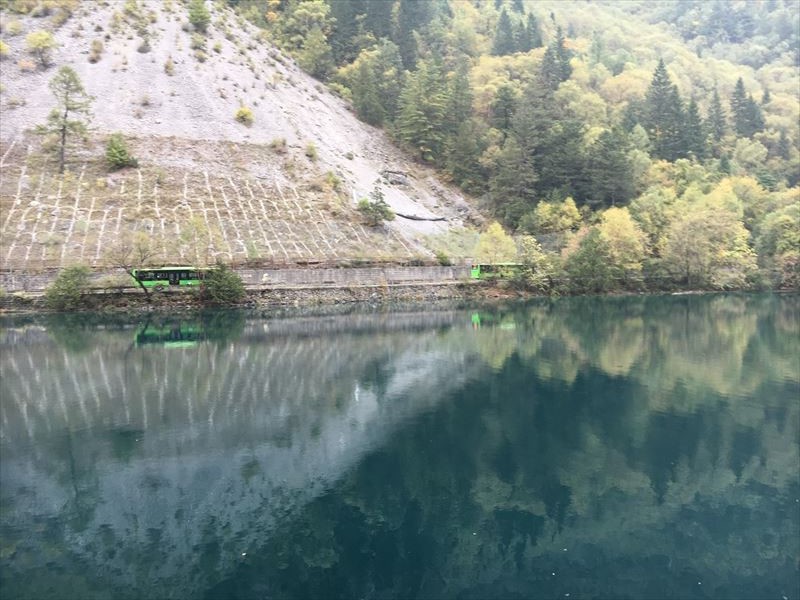 四川省へ ~その6~ 旅 2016年10月21日 九寨溝の中は広いのでバスが走っています。 上りは分岐で止まると聞いていたのですが、 右の原始森林までノンストップでした。 上りのバスは途中で止まらないようです。 下りのバスは各バス停で止まります。 時間の都合で左の長海から見ていくつもりだった のですが、変更を余儀なくされました。 のっけから原始森林をスルーして、すぐ下りの バスに乗って、順番に見ていきました。 九寨溝だけで23kmほど歩きました(笑) ガイドさんは「途中からは似た景色なので 飽きますよ」と言ってましたけどね。 確かに下の方のポイントは時間の関係もあり 見なかった場所もありました。 バスの中の放送では「次は九寨溝の見どころ~」 って全部見どころですよw 人が少ないところをのんびり歩いたり、 ぼーっと水面を眺めてる感じ。 今振り返ってもあれは「至福のひととき」 晴れているともっとよかったのでしょうが、 10年越しの夢が叶ったので非常に満足でした。 また違う季節に訪れてみたいですね。