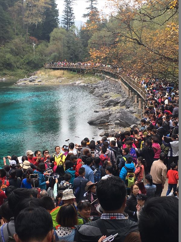 四川省へ ~その5~ 旅 2016年10月20日 去年の春節に行きかけた悲願の九寨溝に到着。 入り口にはバスがつけられないらしいです。 実際のところ下の混雑を見れば納得します。 ということで、徒歩20分くらいのところで 降ろされて歩いていくことになります。 あいにくこの日は曇りでした。 途中お約束のお土産通りを場所を通過。 そして、意気揚々とゲートに到着するも… なんだこの人!! ガイドさんもチケットを取りに行って、しばらく 戻ってきませんでした。すでにツアーの仲間も 散り散りに。ガイドさんはモギリポイント手前 で待機してました。さすがですね。 入場制限ですね。一日4万人までって… 結構並びましたが、無事に友達と入場です。 ▼ そろそろ身の振り方をはっきりさせたい。 中国語との付き合い方も考えないと。 とりあえず来週からですが…