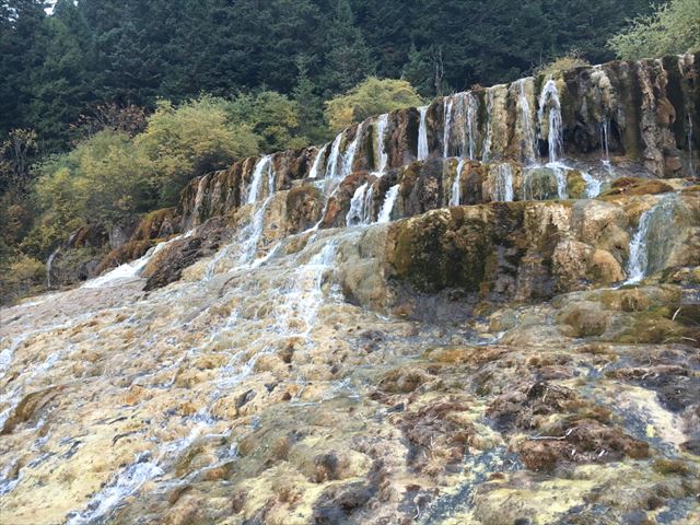 四川省へ ~その3~ 旅 2016年10月17日 非日常ゆえのテンションで4時半に起床。 5時にロビーなんですが、寝坊する人も… 団体行動の宿命ですね。 ▼ 送れること20分。5時半頃集合場所に到着。 早い割には朝食の店も出てました。 あとはレインコートやネックピロー売ってたw 結構な数のバスが集まってきます。 6時前に出発。ガイドの説明のあとはみな爆睡w 2008年大地震のあった汶川を通過。 ここが該当地か分かりませんが、数年後には 新幹線ができて、成都と九寨溝をを4時間半くらい で結ぶそうです。今はバスで8時間ですw ▼ 途中何度か休憩。 大枚はたいて作っているAAAAのテーマパーク。 行きはトイレ休憩のみ。帰りはお土産タイムww